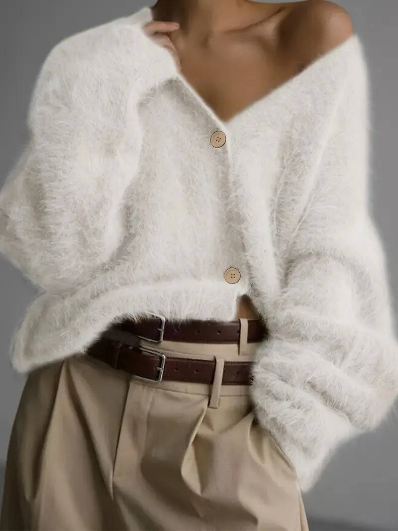 Women's Fuzzy Cropped Cardigan Sweaters With Buttons