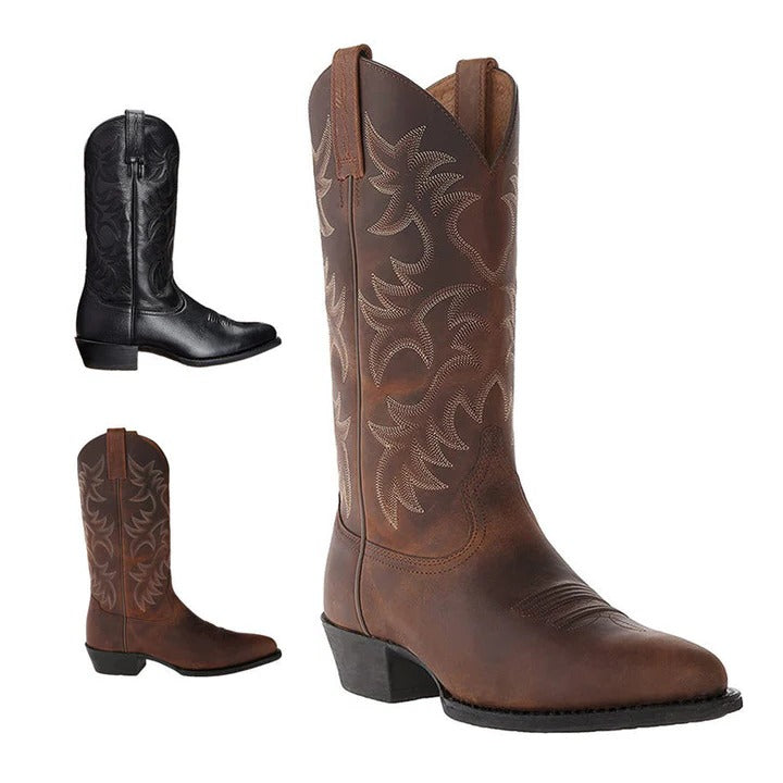 - Pointed toes with classic cowboy boot styling