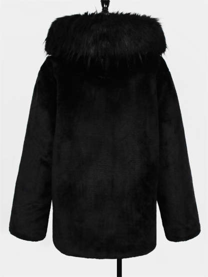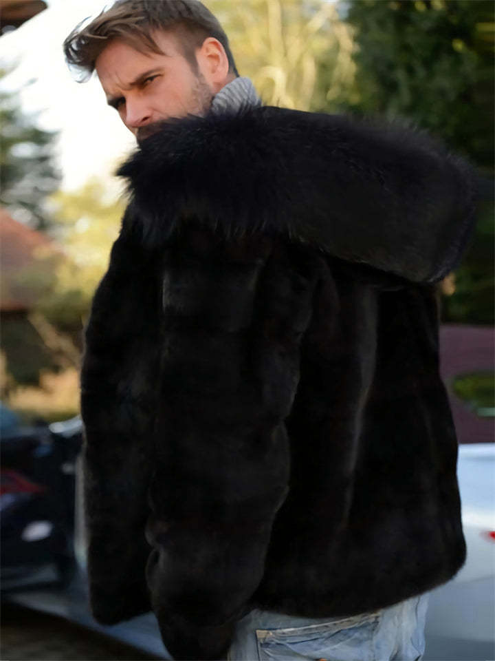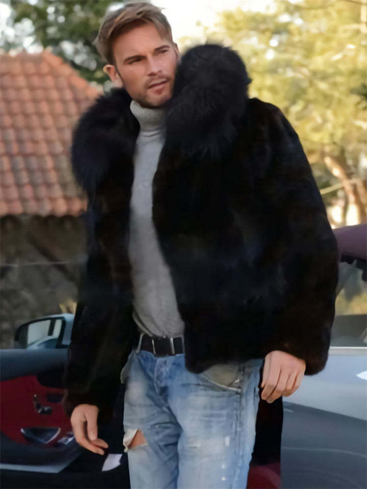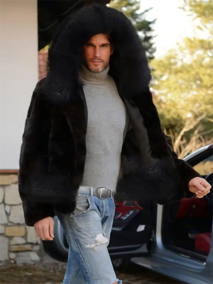 Men's Cool Trendy Hooded Black Faux Fur Coat