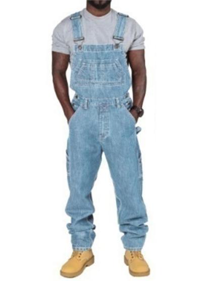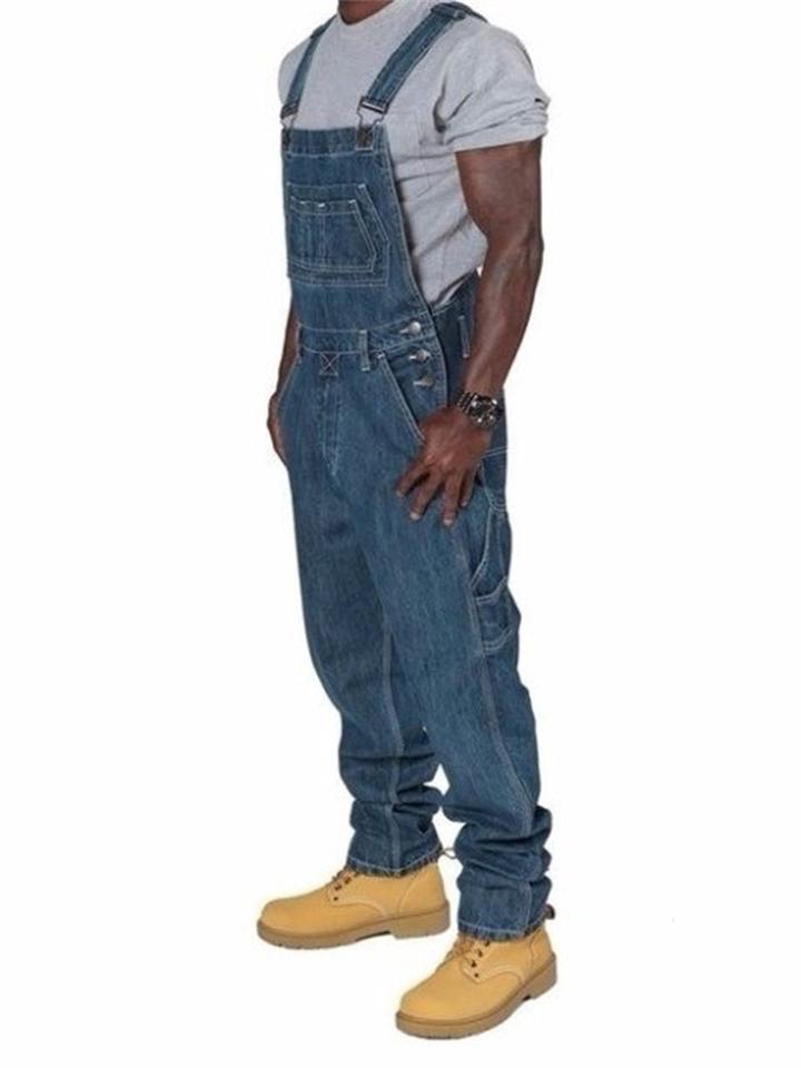 Men's Multi-Pocket Washed Effect Loose Denim Jumpsuit Overalls