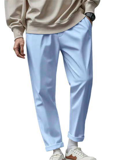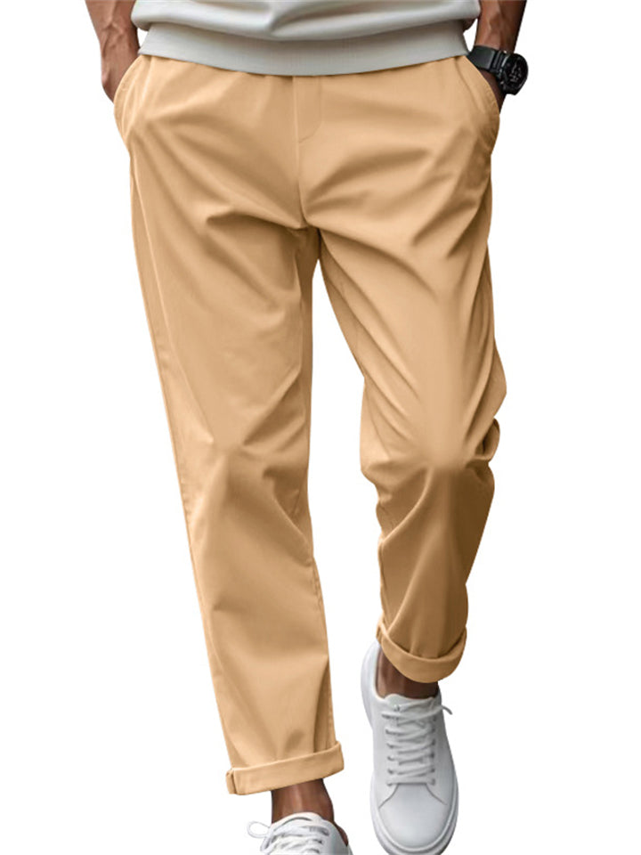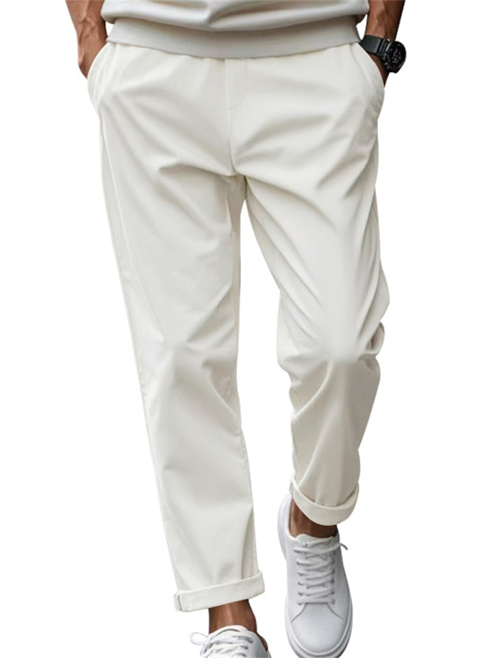 Men's Solid Color Comfy Quick-drying Drawstring Straight Trousers