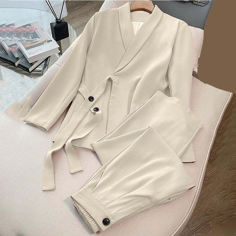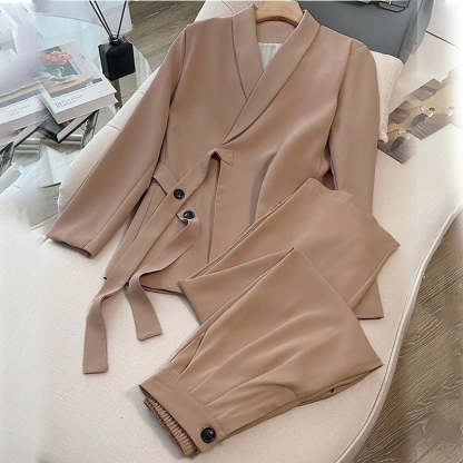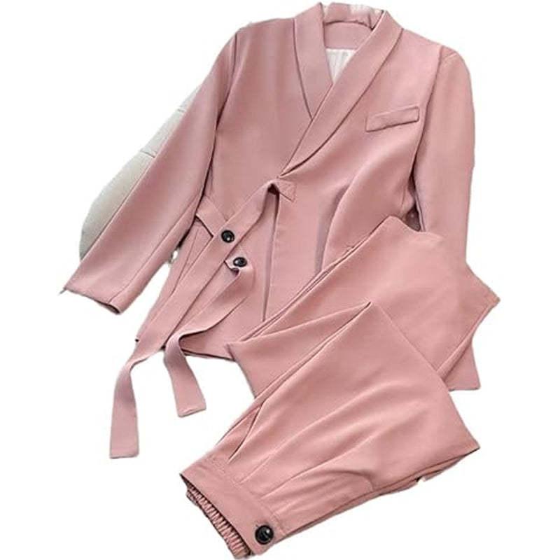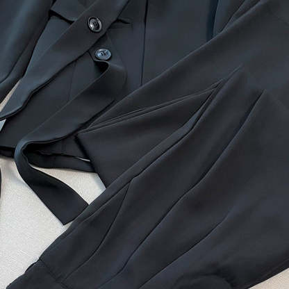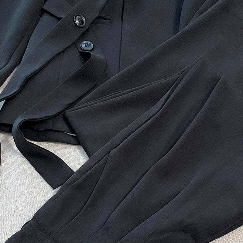 Women's Formal Office 2-Piece Set: Tie-Front Blazer & Wide Leg Pants