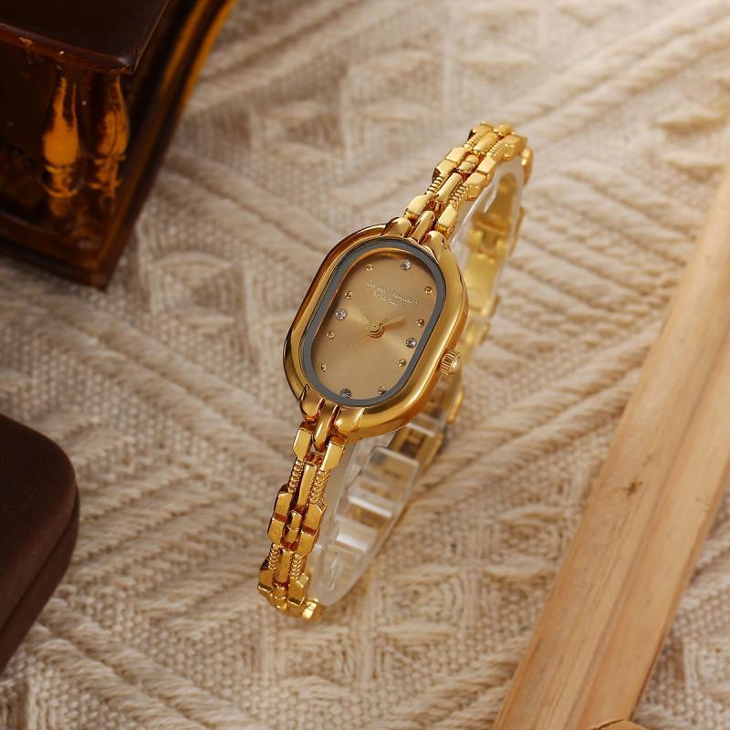 VINTAGE ELEGANT DESIGN: The watch features an oval - shaped golden dial with delicate scales and hands. The addition of a few small diamonds on the dial adds a touch of luxury. The golden chain - link bracelet is exquisitely crafted, giving the watch an overall retro yet fashionable look that can enhance your charm on any occasion.
